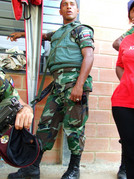 Неподалеку – один из армейских блокпостов. В Сьюдад-Миранде, как и во всей стране, очень много солдат. Как правило, совсем молодых. Возраст армейского призыва в профессиональные войска – от 16-ти до 22-х лет. В своей массе, это темнокожие выходцы из барриос и сельских провинций. Служба в армии – первая ступень социальной лестницы, которую открыл для них режим Чавеса. Они не только охраняют страну от ее внешних и внутренних врагов. Они участвуют в хозяйственных работах, учатся грамоте, приобретают профессии, строят жилье для самих себя и своих товарищей. Солдаты, в новых комбинезонах цвета темного хаки, неотделимы от своего народа. Они мелькают везде, участвуют в уличных собраниях и уличных вечеринках – и как вооруженная охрана, и как активные, сознательные граждане. И весьма дорожат своей особой ролью в жизни нынешней Венесуэлы. Во время восстания 1992 года за Чавесом пошли десять батальонов. Сегодня за ним вся армия Венесуэлы, кроме сотни генералов и адмиралов, вычищенных после неудавшейся попытки «чилийского сценария».