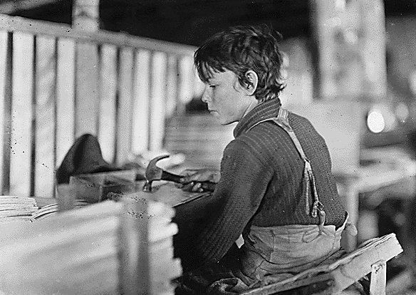 - "Грузчик Оуэнс. 12 лет. Не умеет читать. Не знает алфавит. Говорит: "Да, я хочу учиться, но не могу, все время занят работой". Работает на фабрике 4 года".