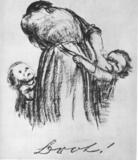 Эти тяжкие своим содержанием работы взорвали само представление о задачах художественного творчества и его составляющего - рисунка. Реакционная верхушка правящего класса Германии изначально поняла значение восходящего творчества Кольвиц. Кайзер Вильгельм II лично отклонил предложение академических кругов, рекомендовавших присудить "Восстанию Ткачей" золотую медаль германской выставки искусств. Респектабельная буржуазная пресса проницательно писала о том, что серия рисунков молодой художницы несет в себе "общественную опасность".