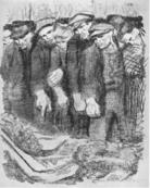 Вслед за этим, Кольвиц спросит себя в своем дневнике: "Имею я право изобразить прощание рабочих с Либкнехтом без того, чтобы при этом политически следовать Либкнехту? Или нет?"