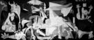 У картины Пикассо завидная судьба. Она по-прежнему выводит из душевного равновесия и поджигателей войны, и ее непримиримых противников. На "закрытую" империалистами "Гернику" пристально смотрят во всем мире. Ведь завтра ее гротескный хаос может проявиться в документальных фотоснимках уничтоженных городов и селений Ирака.