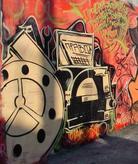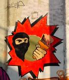 Конечно же, власти Тьмы не собирались сидеть, сложа руки, и посланники Ада в милицейских формах сорвали было процесс грунтовки под будущую стенопись, записав имена маляров в свою Черную книгу. Догрунтовывать пришлось в партизанских условиях - перебежками и осмотрительными вылазками с расставленными на шухере лазутчиками. Даже на следующий день, когда с динамиков было объявлено официальное начало фестиваля и когда райтеры уже принялись набрасывать спрэем рисунки - чья-то рука сильно дернула меня за капюшон. Раздосадованный от кривой линии вследствии толчка, я обернулся и увидел усатого типа в фуражке, находящегося при исполнении обязанностей, который тотчас же посоветовал мне рисовать дома. Рассмотреть сие предложение как следует не довелось, ибо через минуту завязался серьёзный диспут между представителями правопорядка и организаторами из Комсомола. Официальное разрешение от горадминистрации не помогло. Помог чей-то депутатский значок. Жаль, конечно, что не наоборот.
