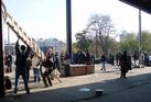 На следующий день, как и прогнозировалось, стенка стала местом паломничества «небайдужого до мистецтва» народа. Добираясь до места славы в троллейбусе, мною был зафиксирован разговор двух пожилых людей о предмете, который сразу же меня заитересовал. Ныкаясь от кондукторшы с ее дурацкими расспросами о талончиках, удалось, все же, «нарезать» кое-какие сэмплы из диалога: «Такое цветное»…«ну там, за мостом»…«ща’ увидишь»… «кто?? революционеры?..»