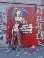 Агрессивная живопись сентиментальных комсомольцев... Мрачные серые стены и опоры автомобильного моста возле столичного завода "Большевик" в субботу словно повеселели, став ярче и привлекательнее.