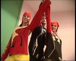 30 мая в галерее "Лавра" прошел финал конкурса молодых дизайнеров одежды "Погляд у майбутнє", в котором приняли участие комсмольцы. Среди супер-моделей и их супер-спонсоров, замелькали наши атрибуты. Забегая вперед скажу: Катя получила специальный приз за самую провокационную коллекцию, и этот титул был заслужен сполна. Работа началась еще до показа, когда команда райтеров готовила оформление зала. К сожалению, по настоятельной рекомендации организаторов, плакаты "Revolution" и "Влада робітникам" пришлось убрать, но у наших на это рука не поднялась, поэтому организаторам пришлось самим решать эту проблему. После представления участников и вводной части мероприятия началась основная часть. За призовые места боролся 21 участник, но коллекция Кати была, пожалуй, единственной в которой можно ходить не только по квартире с закрытыми окнами и задернутыми шторами - в этих вещах можно еще и на улицу выйти. Я, конечно, понимаю: фантазия дизайнера, креатив, от кутюр и всякое такое, но, на мой взгляд, одежда - вещь гораздо более прикладная, чем, например, картины, и должна быть не только произведением искусства, но и иметь функциональный характер.